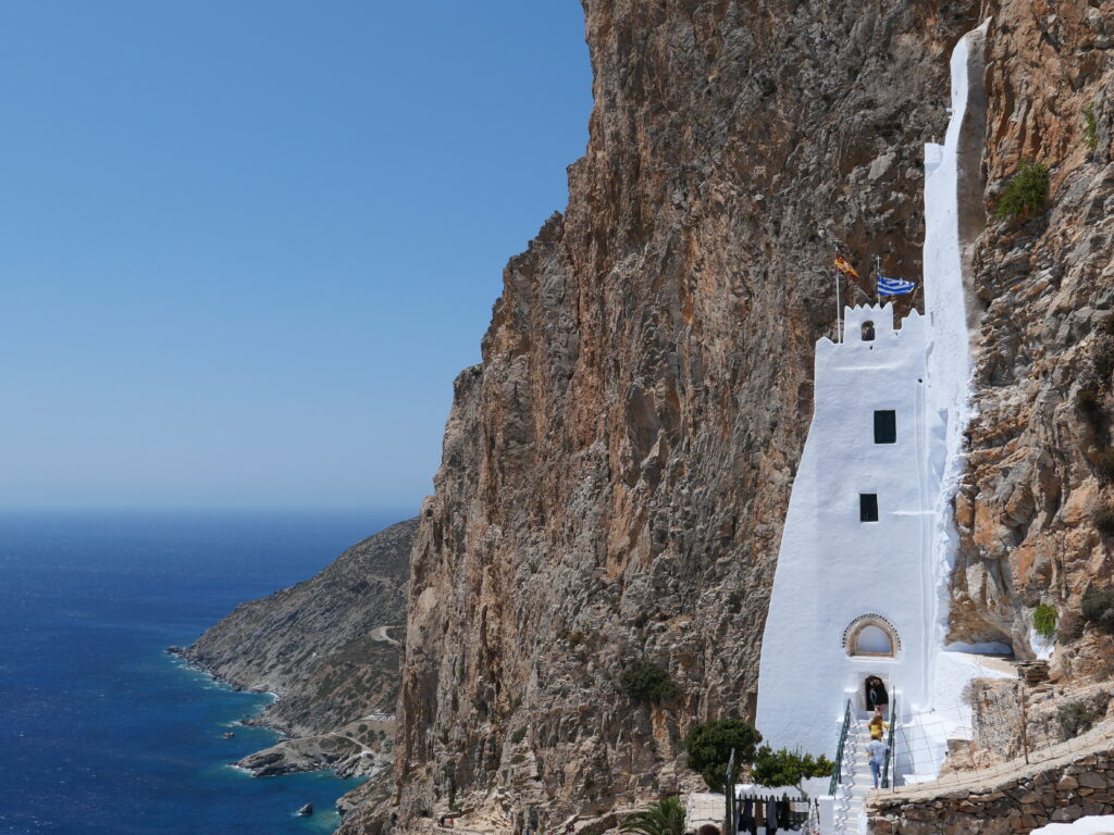 Το κατάλευκο μοναστήρι αγκαλιάζει τον βράχο στα 300 μέτρα πάνω από τη θάλασσα με εκπληκτική θέα. Για να την απολαύσεις θα ανεβείς αργά τα 360 πλατιά σκαλοπάτια. Κτίστηκε το 1017 για να προστατεύσει τη θαυματουργή εικόνα της Παναγίας.