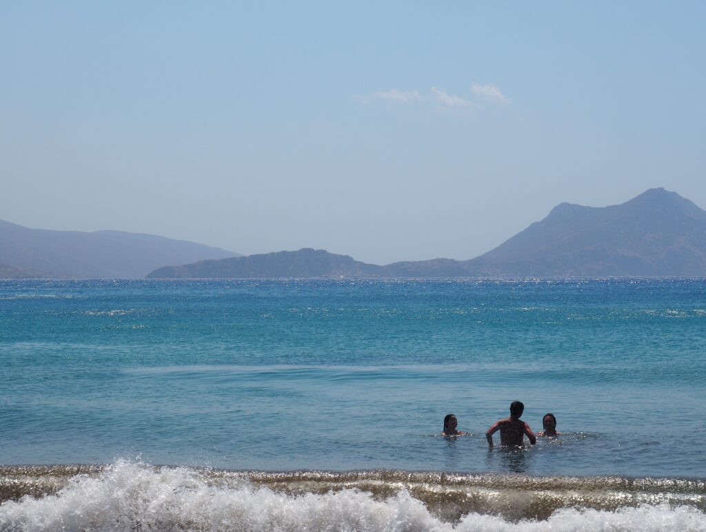 Απέναντι, στο μικρό νησάκι Γραμβούσα με την ωραία παραλία, πάει καθημερινά καραβάκι. Πριν φτάσεις στη θάλασσα πέρασε από τον αρχαίο Πύργο στην Αρκεσίνη, στην ταβέρνα δίπλα με την ελληνική σημαία, δοκίμασα τα καλύτερα πιάτα του νησιού.