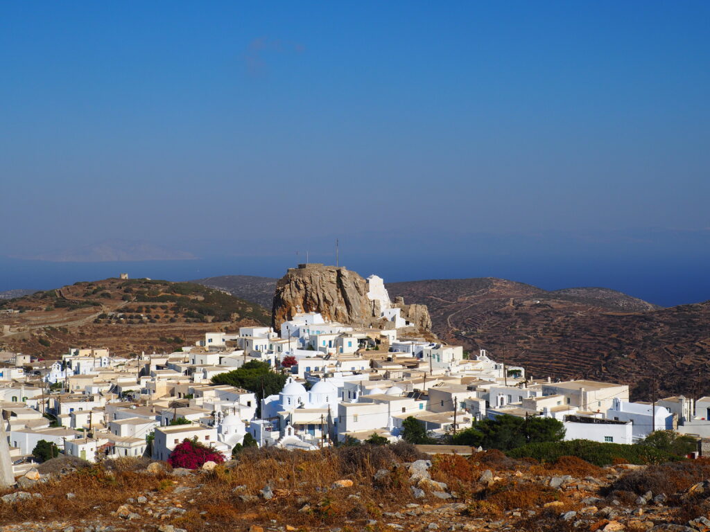 Η Αμοργός έχει μια Χώρα με άγρια ομορφιά. Απέχει από την Αιγιάλη 17 χιλιόμετρα και στον δρόμο δεν σταματάς να κοιτάς τη θάλασσα. Συναντάς κοπάδια με κατσίκια και μονοπάτια που οδηγούν σε παραλίες γυμνιστών. Από μακριά μοιάζει με εκείνα τα Σικελιάνικα χωριά με τα σπίτια που στέκουν κολλημένα στα βράχια.