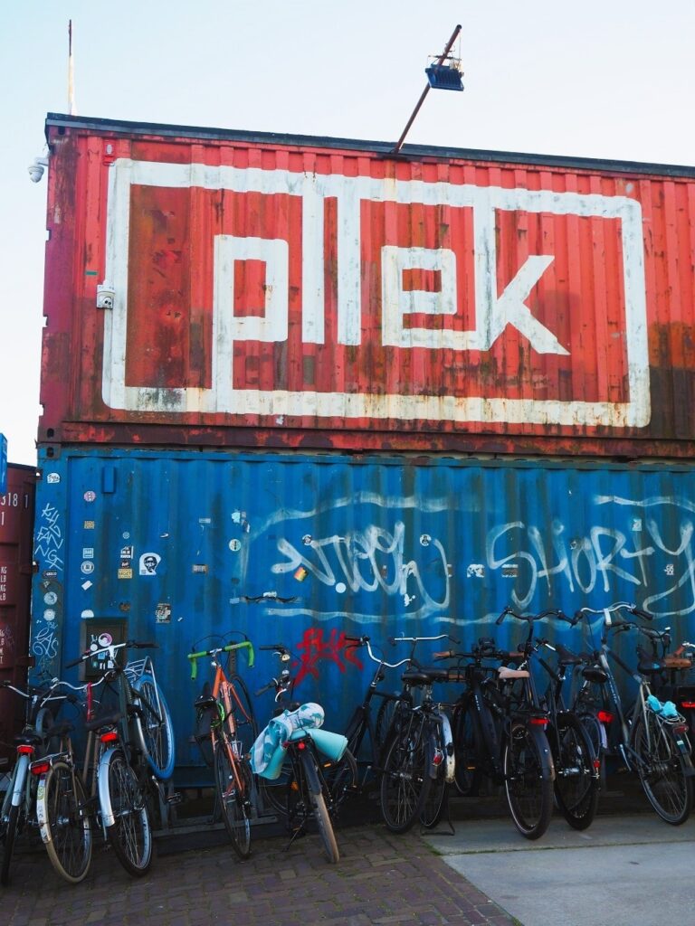 Το Pllek είναι ένα αγαπημένο εστιατόριο/μπαρ φτιαγμένο από παλιά κοντέινερ και ανοιχτό όλη την ημέρα για γεύμα, δείπνο και κοκτέιλ. Τον χειμώνα μπορείς να καθίσεις κοντά στο μεγάλο τζάκι ή στα μεγάλα παράθυρα με θέα το Άμστερνταμ. Το καλοκαίρι είναι στα καλύτερά του, με cinema, τραπεζάκια και μαξιλάρες για να μαζέψεις ήλιο. Πάρε μια μπύρα και δες τον ήλιο να δύει ακούγοντας από τα deck καλή μουσική. Συνήθως κάτι νέο υπάρχει καθημερινά από μαθήματα yoga, εκδηλώσεις και φεστιβάλ.